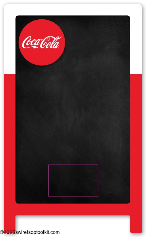 - Two sided sidewalk/entry sign featuring the Coca-Cola disk on the Chalkboard writing surface.