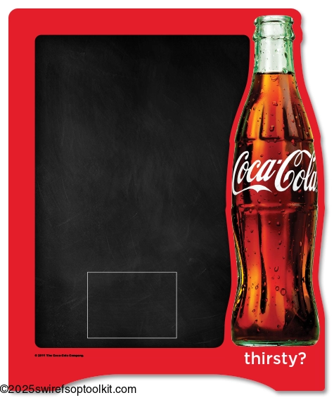 - Photographic quality printed bottle on high gloss die cut in bottle shape dimensional frame that surrounds recessed chalkboard surface for communicating specials and other informative information.