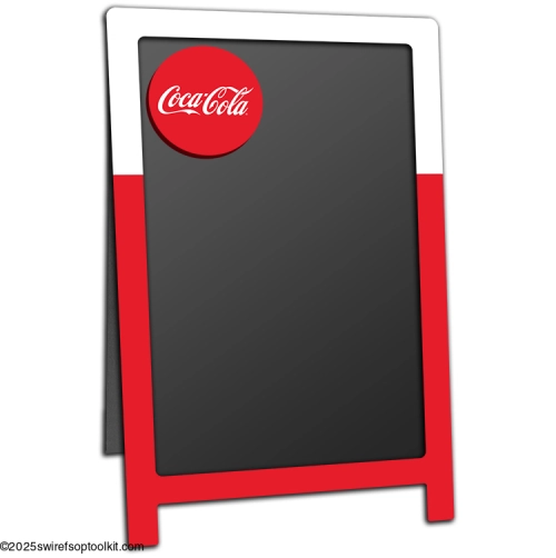 - Two sided sidewalk/entry sign featuring the Coca-Cola disk on the Chalkboard writing surface.