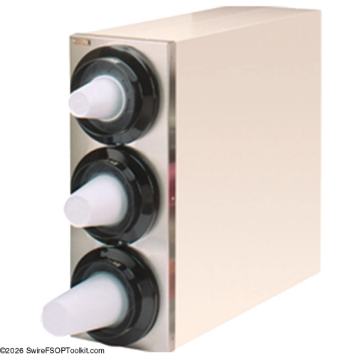 - Holds (3) cup dispensers that fits most 3.5 oz. to 44 oz. cups (except 44 oz. Genuine Coca-Cola Cup).